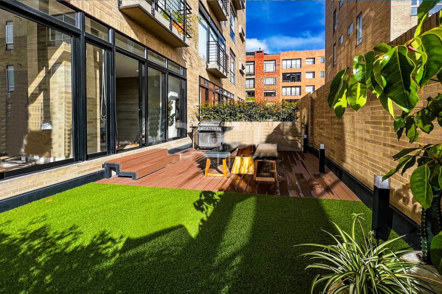 Modern apartment with terrace for sale in Santa Bibiana. Very well located between Cra 17 and Calle 103. It is located near restaurants and shopping centers. The building has a complete electric plant and common areas, reserve water tank, BBQ area, communal terrace, 24-hour security and visitor parking. Availability from March 1, 2026.