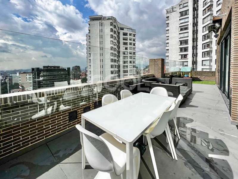 Apartamento con terraza en venta en Rosales Bajo con vista a la ciudad y cerros. Muy bien ubicado entre la Calle 82 con Cra 5. Se encuentra cerca de restaurantes, supermercados y zonas verdes. El apartamento tiene muebles AAA, en la terraza hay un bar, estar de tv, un cuarto con baño, y zona BBQ. El edificio cuenta con salón comunal, gimnasio, jaula de golf, cuarto de conductores, vigilancia 24 horas y parqueadero de visitantes. Disponibilidad inmediata.