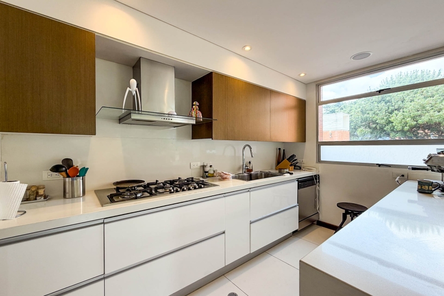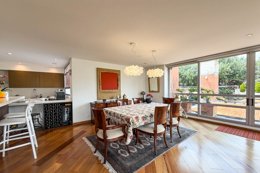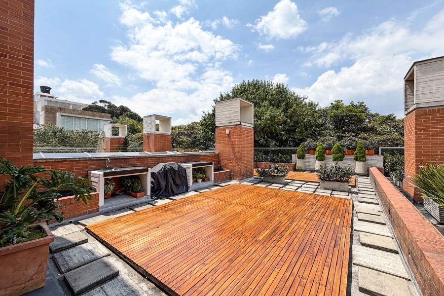 Apartamento con terraza en venta en Santa Bárbara con vista a la ciudad y cerros. Muy bien ubicado entre la Cra 6 con Calle 116. Se encuentra cerca de restaurantes y centros comerciales. Cuenta con planta eléctrica completa, tanque de agua de reserva, salón comunal, vigilancia 24 horas y parqueadero de visitantes. Disponibilidad 31 Julio, 2026.