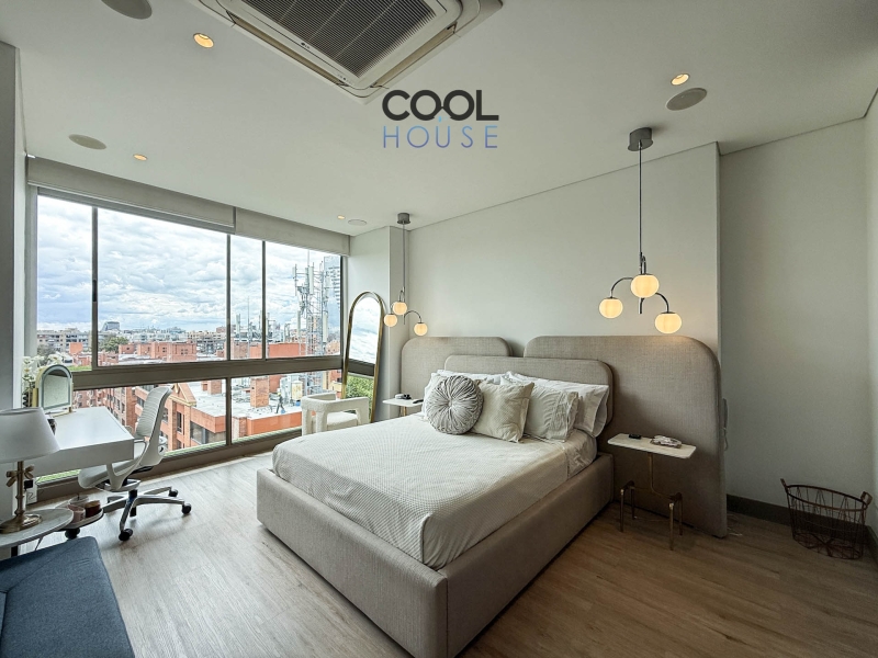 Apartamento Dúplex en venta en Chicó con vista a la ciudad. Muy bien ubicado entre la Cra 16 con Calle 94. Se encuentra cerca de restaurantes y centros comerciales. El edificio cuenta con caldera, planta eléctrica completa, tanque de agua de reserva, salón comunal, gimnasio, vigilancia 24 horas y parqueadero de visitantes. Disponibilidad Inmediata.
