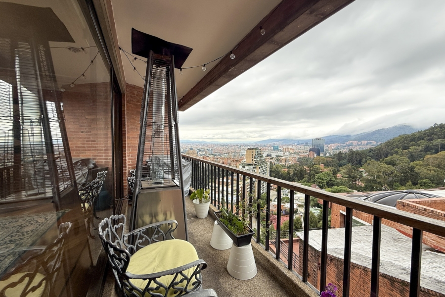 Apartamento en venta en Chicó Alto con vista a la ciudad y cerros. Muy bien ubicado entre la Tv 4C con Calle 110A. Se encuentra cerca de restaurantes y centros comerciales. El conjunto cuenta con caldera, tanquen de agua de reserva, salón y terraza comunal, gimnasio, vigilancia 24 horas y parqueadero de visitantes. Disponibilidad a convenir.