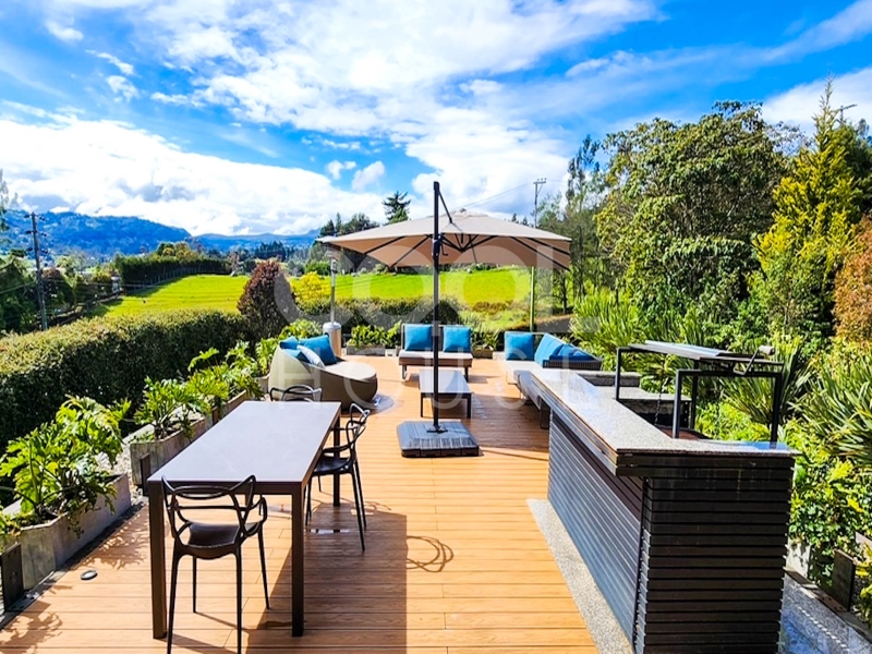 Casa Dúplex con terraza en venta o arriendo en La Calera (3). La casa cuenta con sala comedor amplia con chimenea a gas y salida a una terraza espectacular con una vista unica, calefacción, jacuzzi. El conjunto cuenta con planta eléctrica, cancha de tenis, cancha mini fútbol, capilla, zona infantil, lago, pozo séptico, parqueadero de visitantes y vigilancia 24 horas. Disponibilidad inmediata.