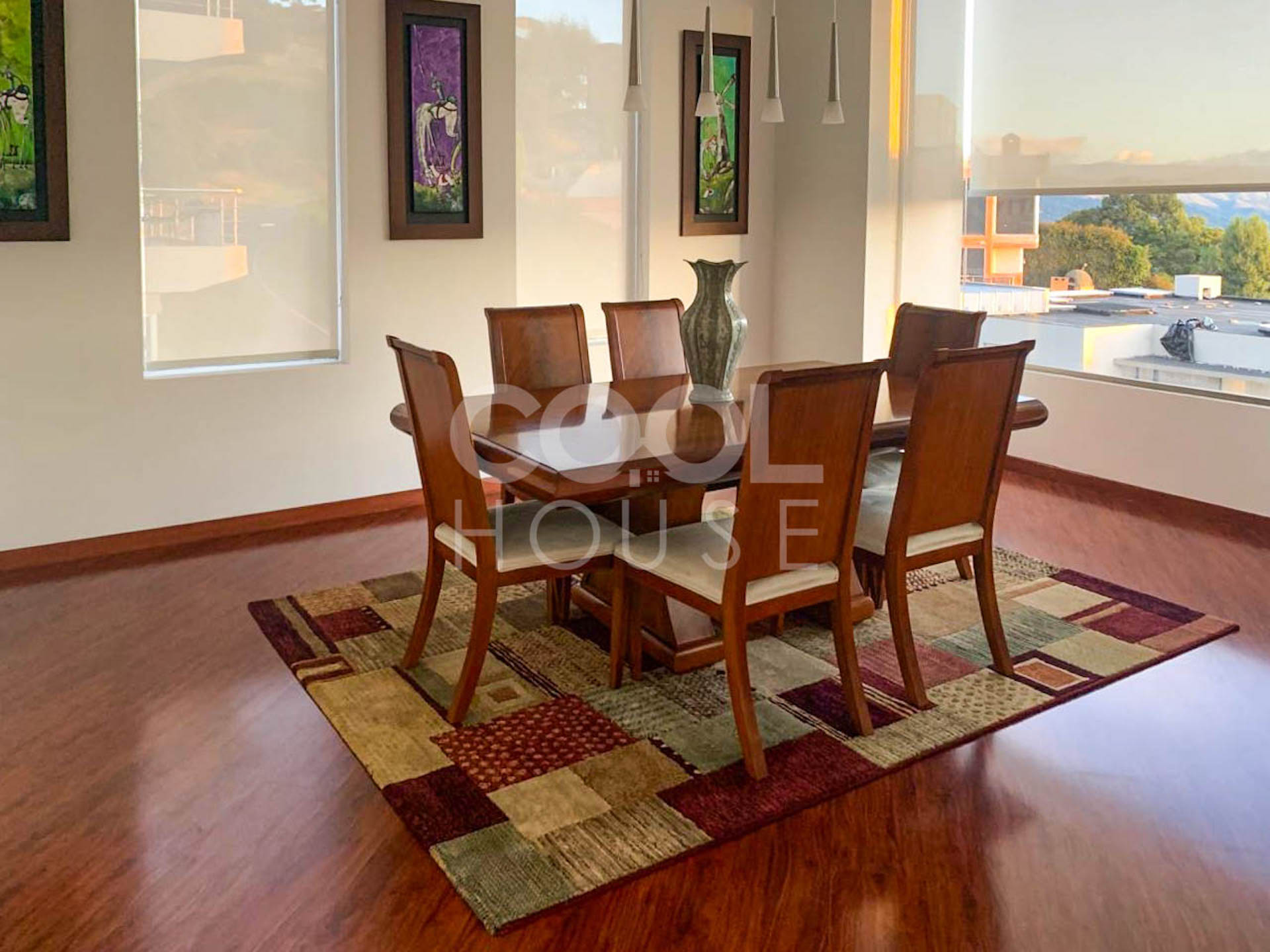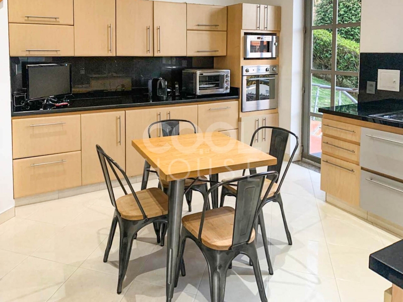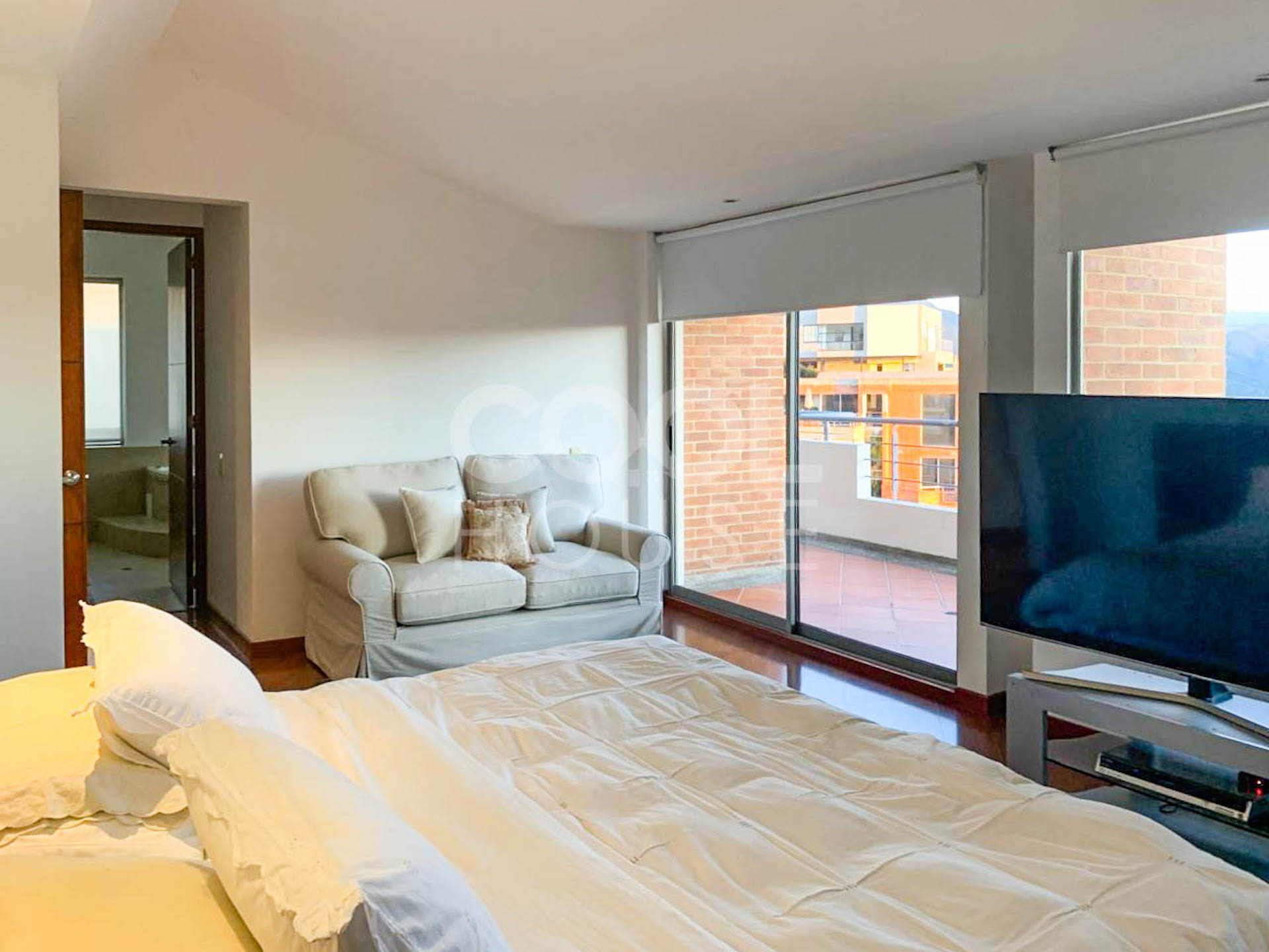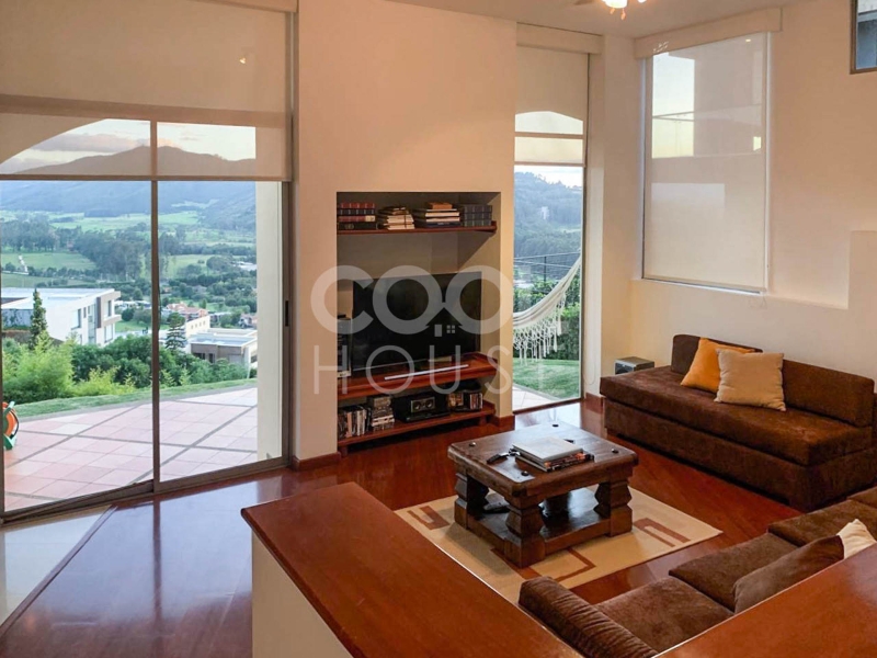 Casa triplex con terrazas en venta en Aposentos – Sopo con vista a los cerros. Muy bien ubicada en el Km 33 Autopista Norte. El conjunto cuenta con planta completa, caldera, salón y terraza comunal, zona BBQ, piscina, gimnasio, cancha de tenis, zona infantil, hipica, vigilancia 24 horas y parqueadero de visitantes. Disponibilidad inmediata.