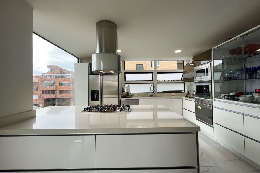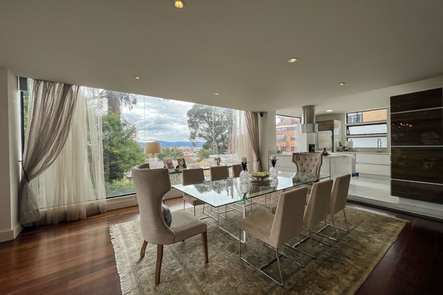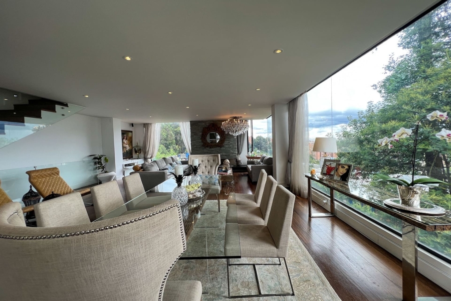 Apartamento Dúplex con terraza en venta en Bosques de Pinos con vista a la ciudad y cerros. Muy bien ubicado entre la Cra 6 Bis con Calle 148. Se encuentra cerca de restaurantes y centros comerciales. El edificio cuenta con terraza comunal, zona BBQ, vigilancia 24 horas y parqueadero de visitantes.