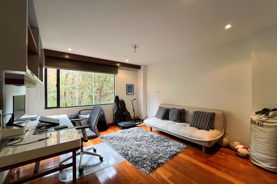 Apartamento Dúplex con terraza en venta en Santa Bárbara Alta con vista a los Cerros. Muy bien ubicado entre la Calle 116 con Cra 2. Se encuentra cerca de restaurantes y centros comerciales. El edificio cuenta con planta completa, salón y terraza comunal, gimnasio, cuarto de escoltas, zona infantil, zonas verdes, cañada de agua natural, cancha de tenis, vigilancia 24 horas y parqueadero de visitantes.