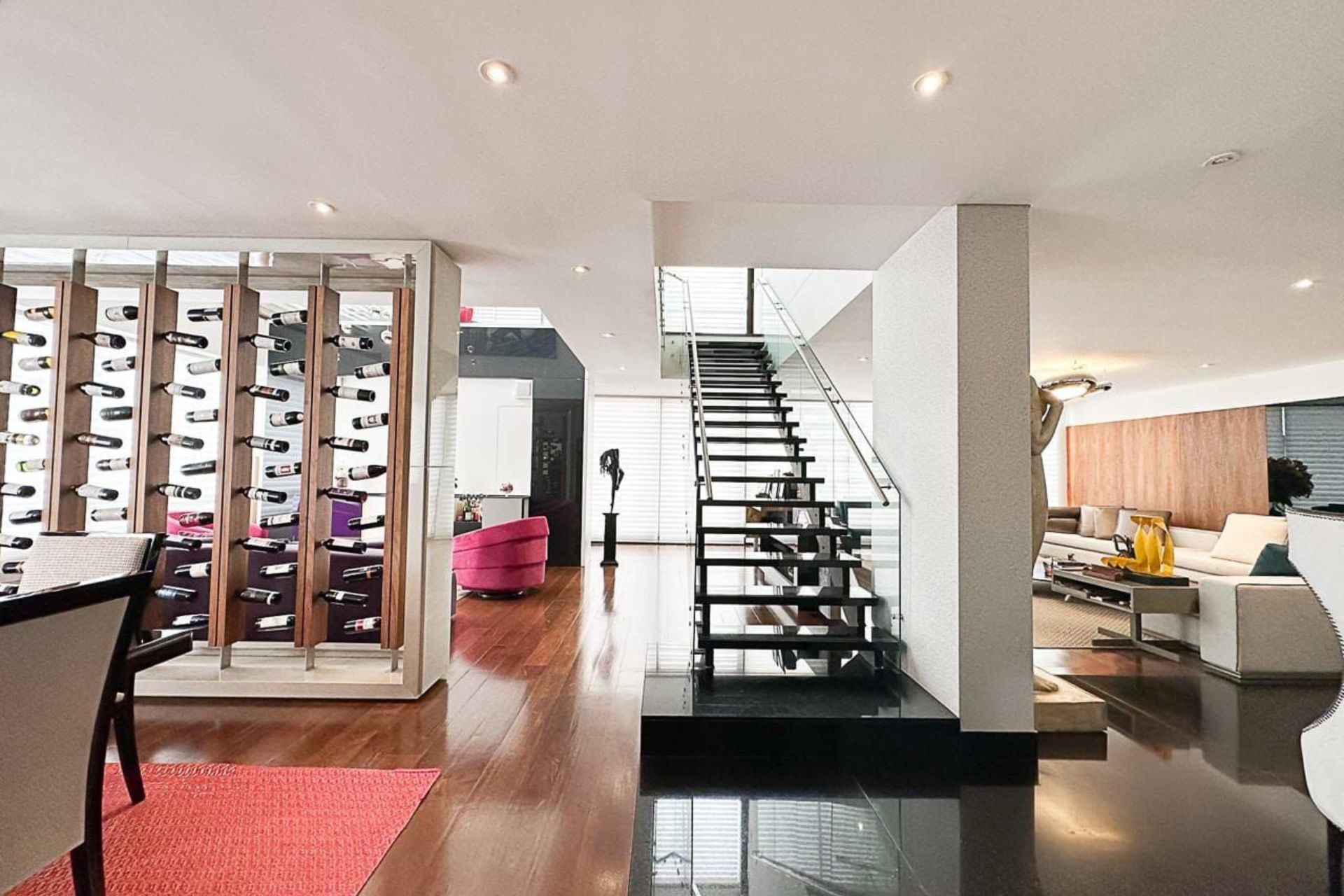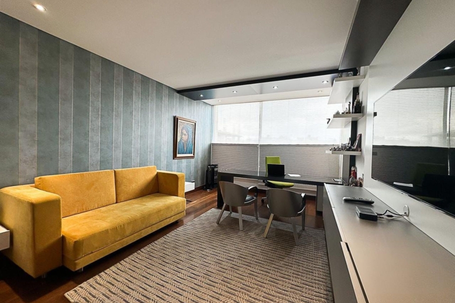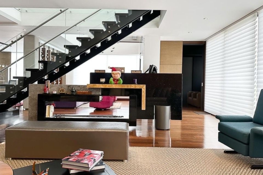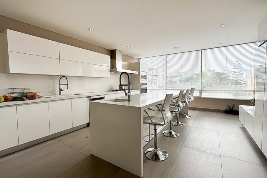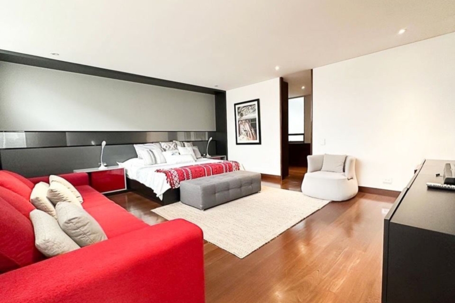 Apartamento dúplex en El Chicó con terraza, disponible con o sin amoblado (3). Ubicado en un exclusivo sector de la ciudad, entre la Calle 97 con Cra 19A, este espectacular apartamento dúplex de lujo cuenta con 380 m² más terraza, destacándose por sus amplios espacios, diseño moderno y zonas sociales únicas, incluyendo una elegante sala de cine privada, bar y acabados de alta gama. Ofrece excelente iluminación, ambientes cálidos y sofisticados, con acabados de lujo en mármol y laminados de madera. La alcoba principal brinda un ambiente tipo suite con walk-in clóset y un baño elegante con jacuzzi, doble ducha y doble lavamanos. Además, dispone de altos estándares de seguridad como puerta blindada y acceso biométrico, garantizando confort, privacidad y un estilo de vida exclusivo, con posibilidad de adquirirse también completamente amoblado.