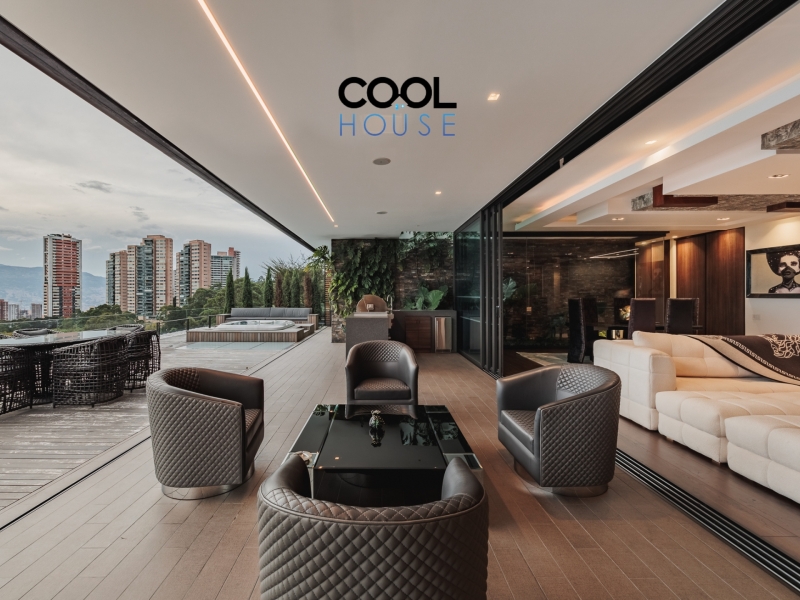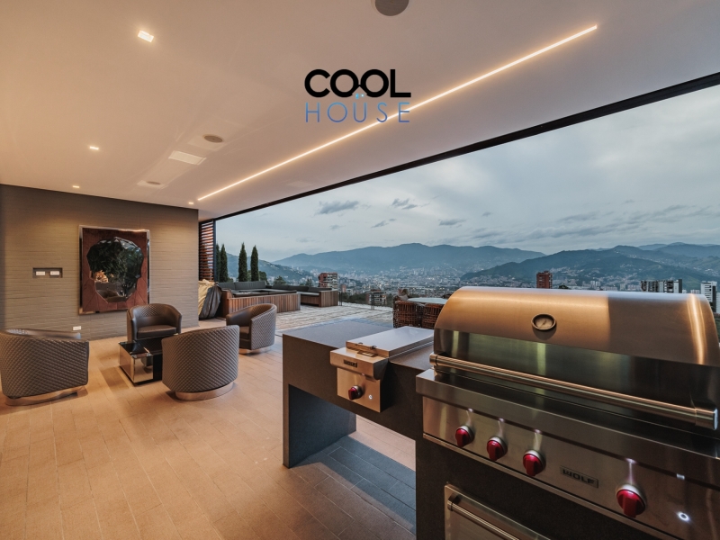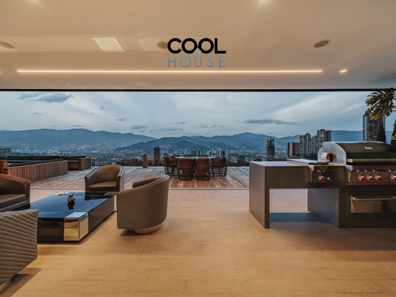 Este penthouse en Santa Elena, Medellín, ofrece espacios amplios y llenos de luz gracias a sus alturas libres de 3 metros. La cocina abierta, equipada con Sub-Zero & Wolf, se complementa con una cocina de servicio que aporta practicidad al día a día.