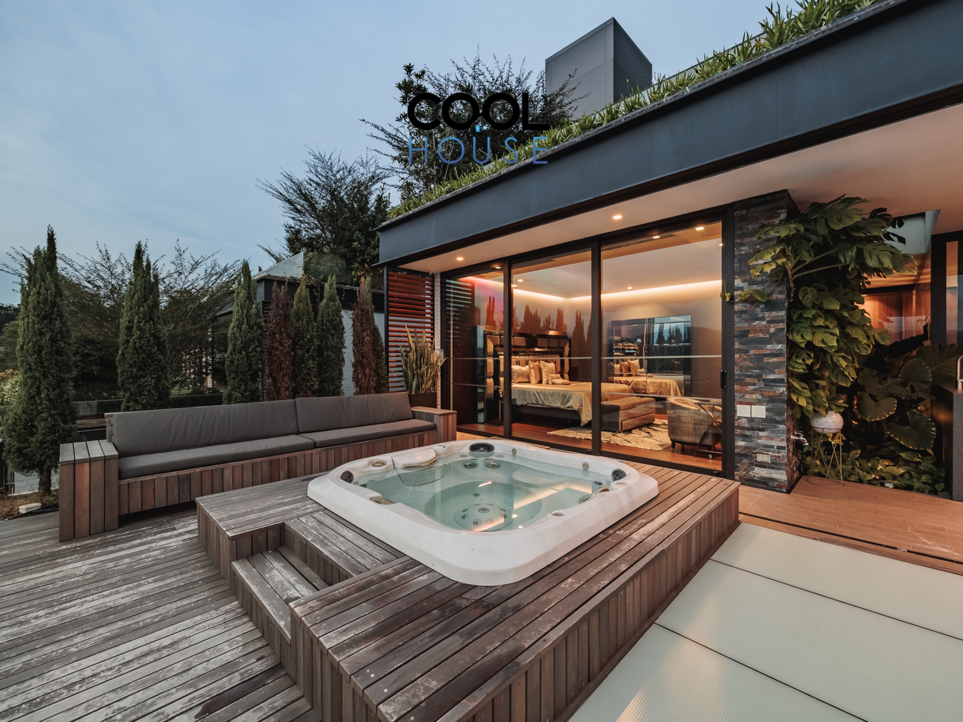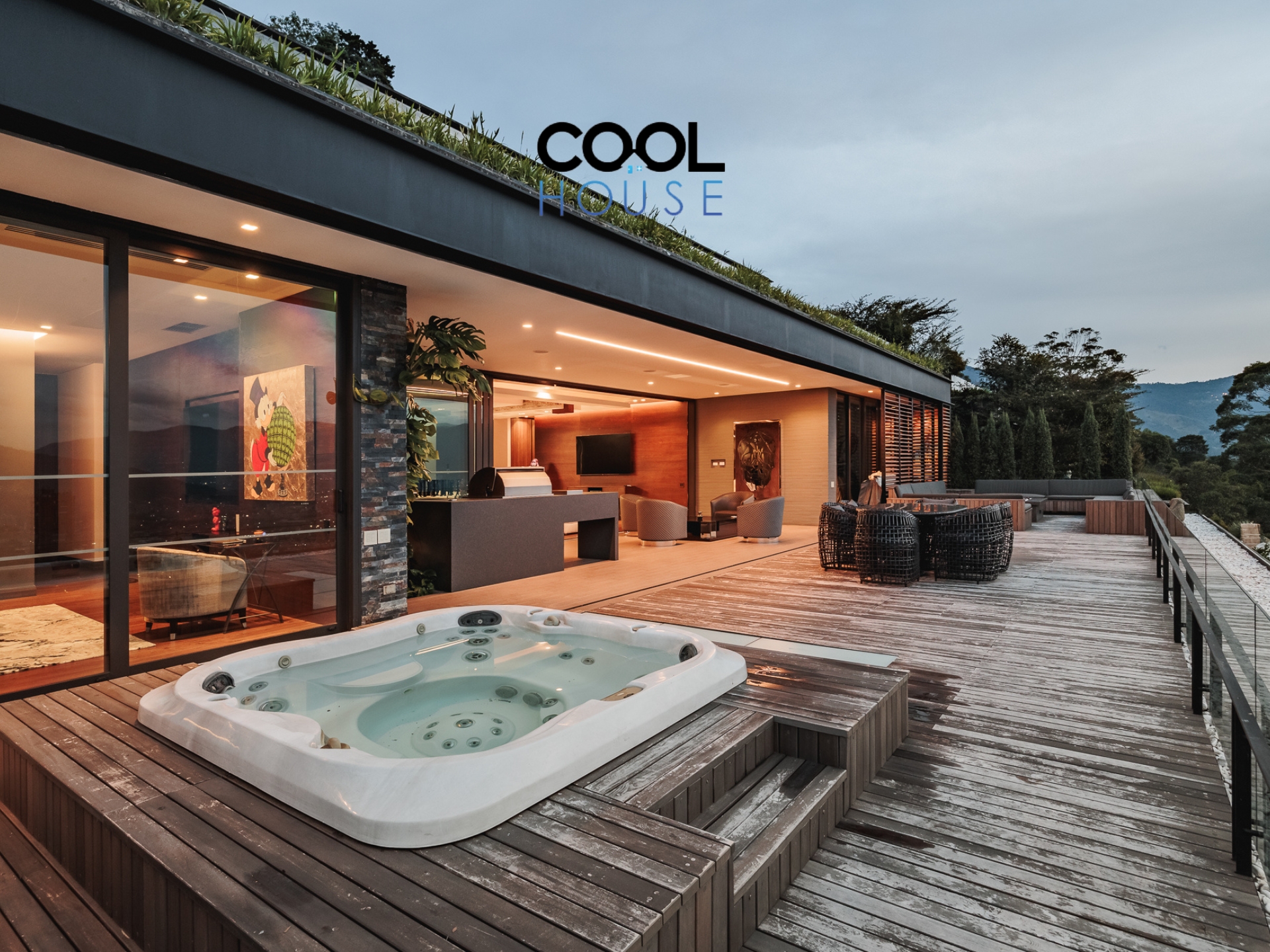 La terraza es uno de los grandes atractivos del apartamento: cuenta con zona BBQ Sub-Zero & Wolf, jacuzzi y una fogata que permite disfrutar del aire fresco de la montaña en cualquier momento. Todo esto acompañado de vistas abiertas que convierten el exterior en un espacio ideal para reunirse, descansar o simplemente contemplar el paisaje.