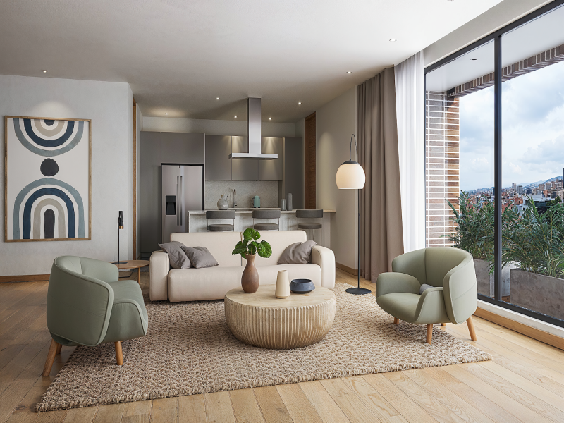 Proyecto VíBIRE- Apartamentos en venta en La Cabrera. Tienes la posibilidad de escoger si quieres tu cocinas abierta o cerrada, de ampliar la sala o aumentar el espacio del balcón hacia la fachada. Los arquitectos pueden personalizar el espacio desde el inicio para que vivas en el apartamento de tus sueños. El edificio se caracteriza por el uso predominante del ladrillo y ventanas amplias que proporcionan amplitud y vista panorámica desde los apartamentos. Las amenidades del edificio son: super gimnasio, salas de juntas, un salón comunal, áreas exteriores con jardines, zona de BBQ y un parque infantil. Además, se ha diseñado una vía vehicular para facilitar el acceso desde la Carrera 11, permitiendo la distribución hacia los sótanos, los estacionamientos para visitantes o dejando a los residentes frente a la entrada principal.